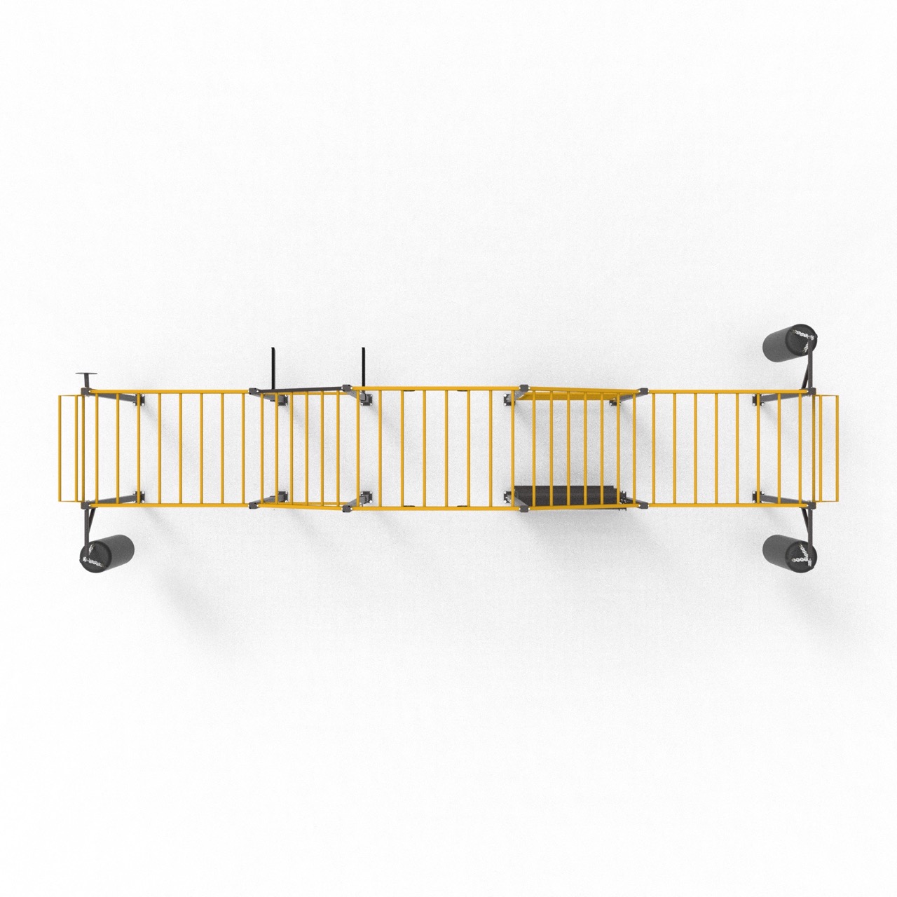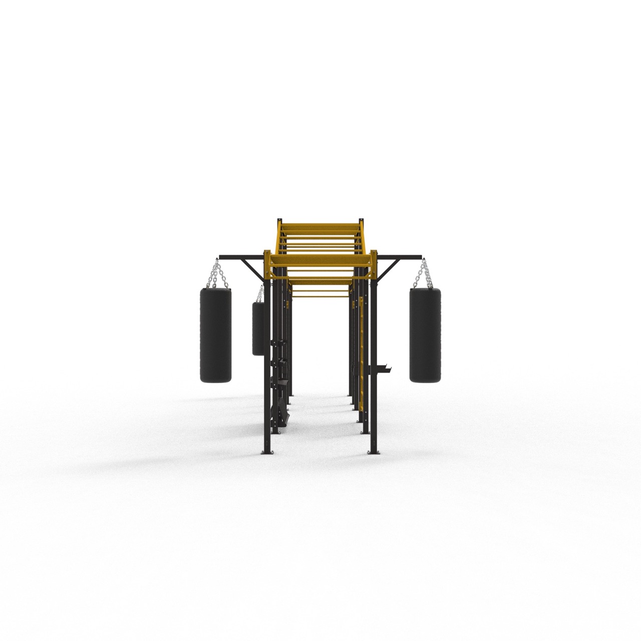 Элементы комплекса GW-6: Наклонный рукоход – 2 шт. Разноуровневый рукоход – 3 шт. Классические турники – 2 шт. Двойные перекладины – 10 шт. Треугольные перекладины – 2 шт. Кронштейн для подвеса боксерской груши – 1 шт. Тактическая мишень – 1 шт. Фиксаторы для каната (кроссфит) – 2 шт. Страховочные рычаги для работы со штангой – 2 шт. Крюки для установки штанги – 2 шт. Функциональные полки для хранения спортивного инвентаря: